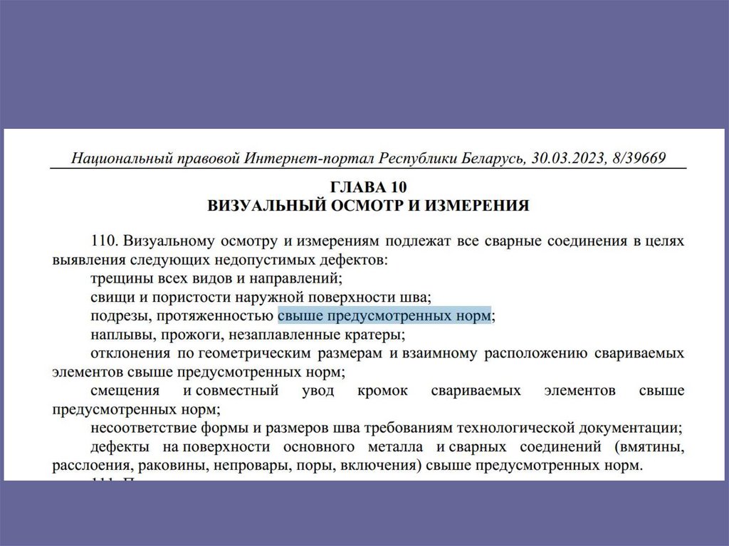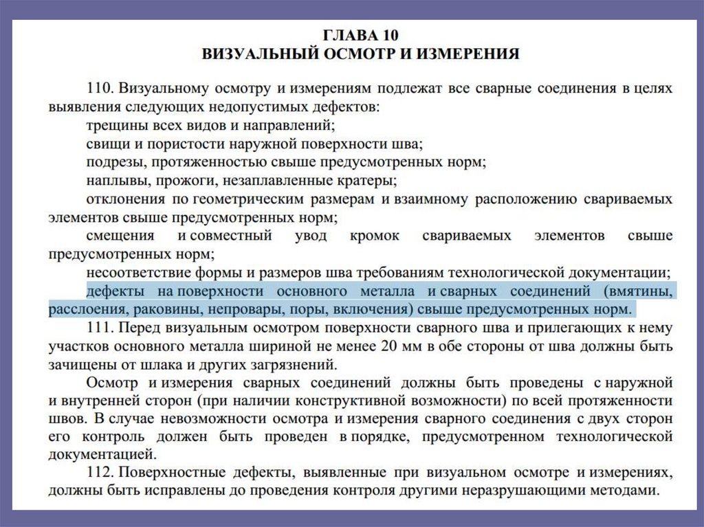 • Основной недопустимый дефект - трещина (даже при