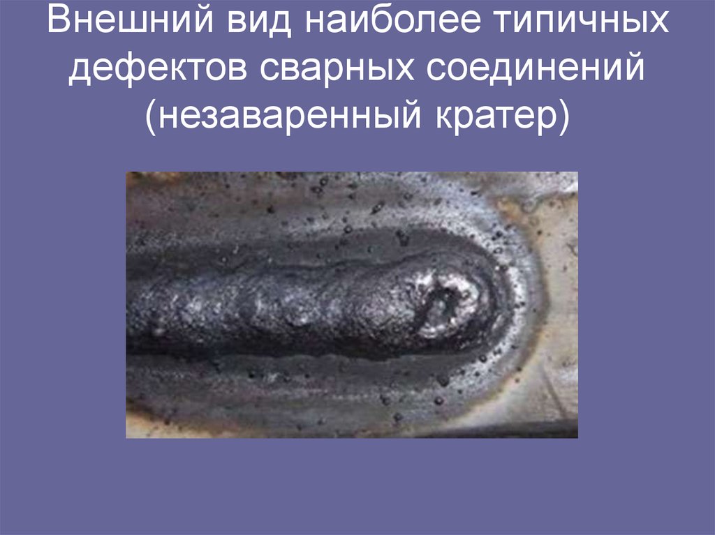 191. Внешний вид наиболее типичных дефектов сварных соединений (незаваренный кратер)
