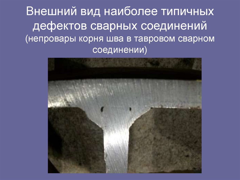 193. Внешний вид наиболее типичных дефектов сварных соединений (непровары корня шва в тавровом сварном соединении)