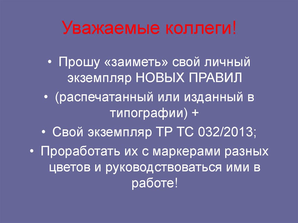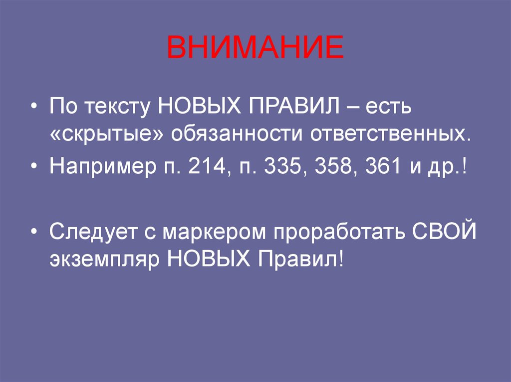 • Прошу «заиметь» свой личныйэкземпляр НОВЫХ ПРАВИЛ
