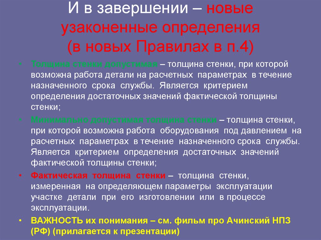 • ВАЖНОСТЬ их понимания – см. фильм про Ачинский НПЗ