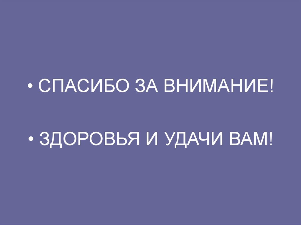 • СПАСИБО ЗА ВНИМАНИЕ!• ЗДОРОВЬЯ И УДАЧИ ВАМ!
