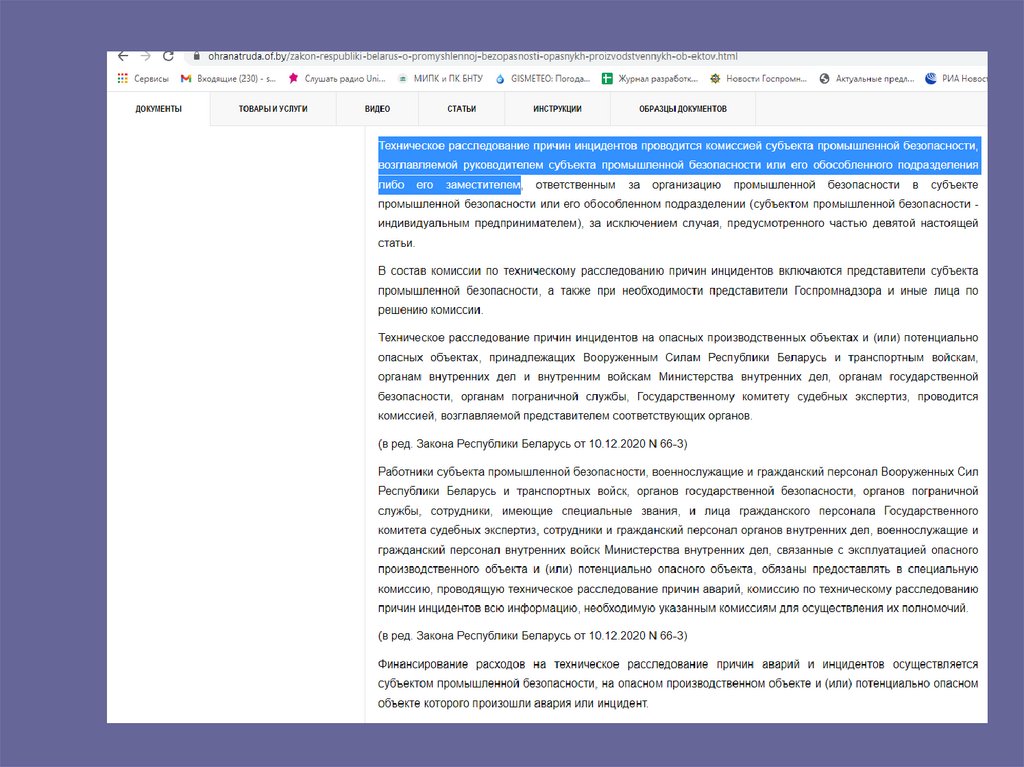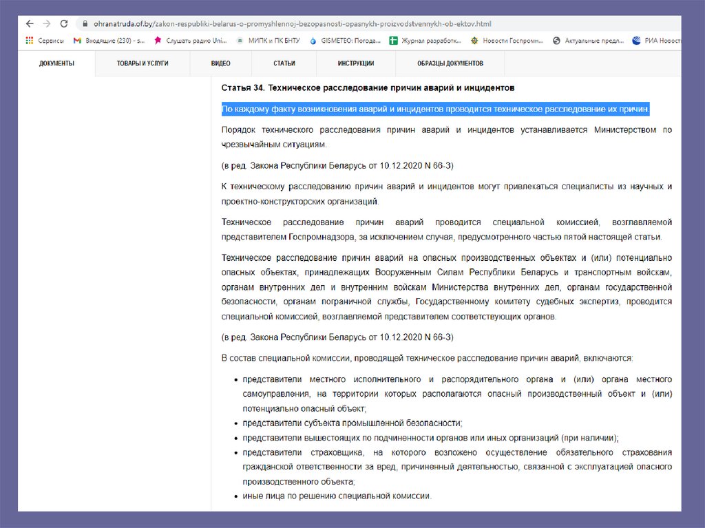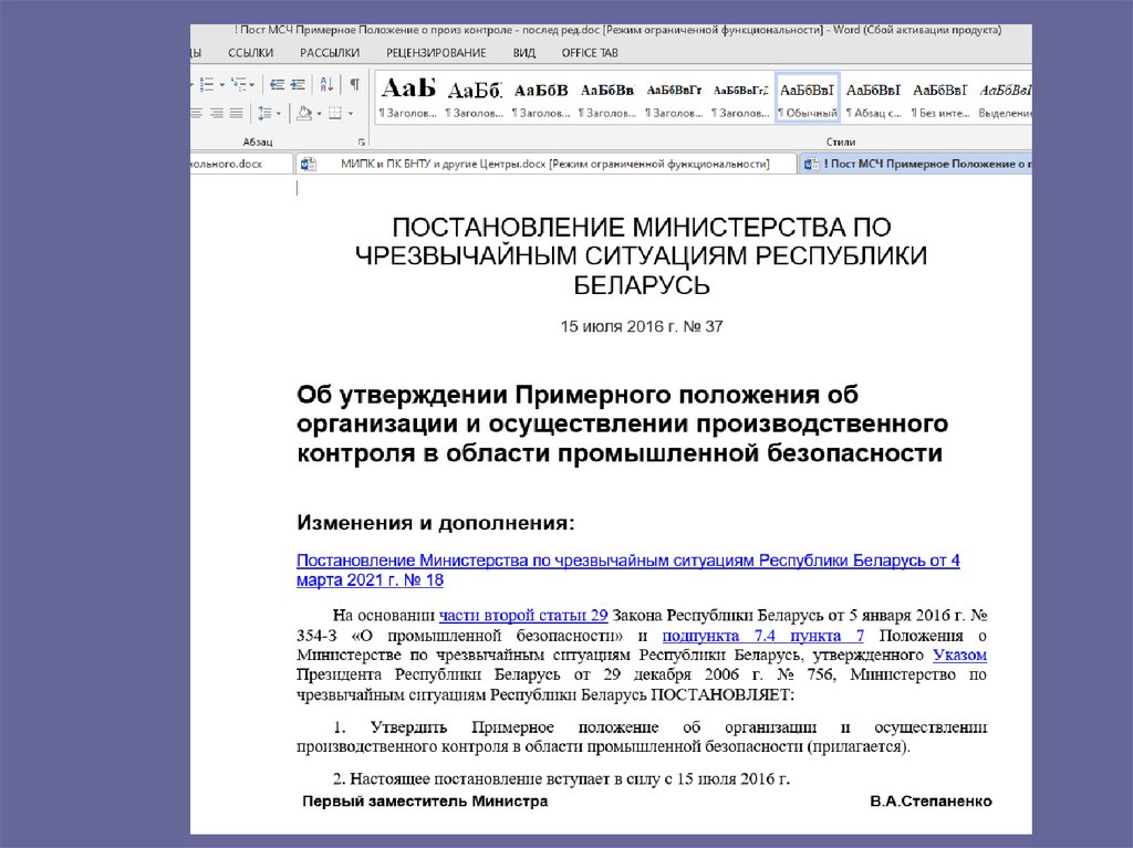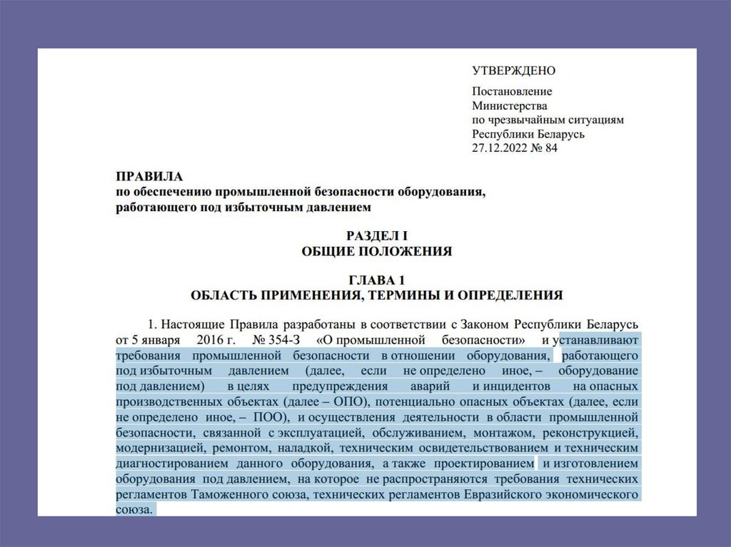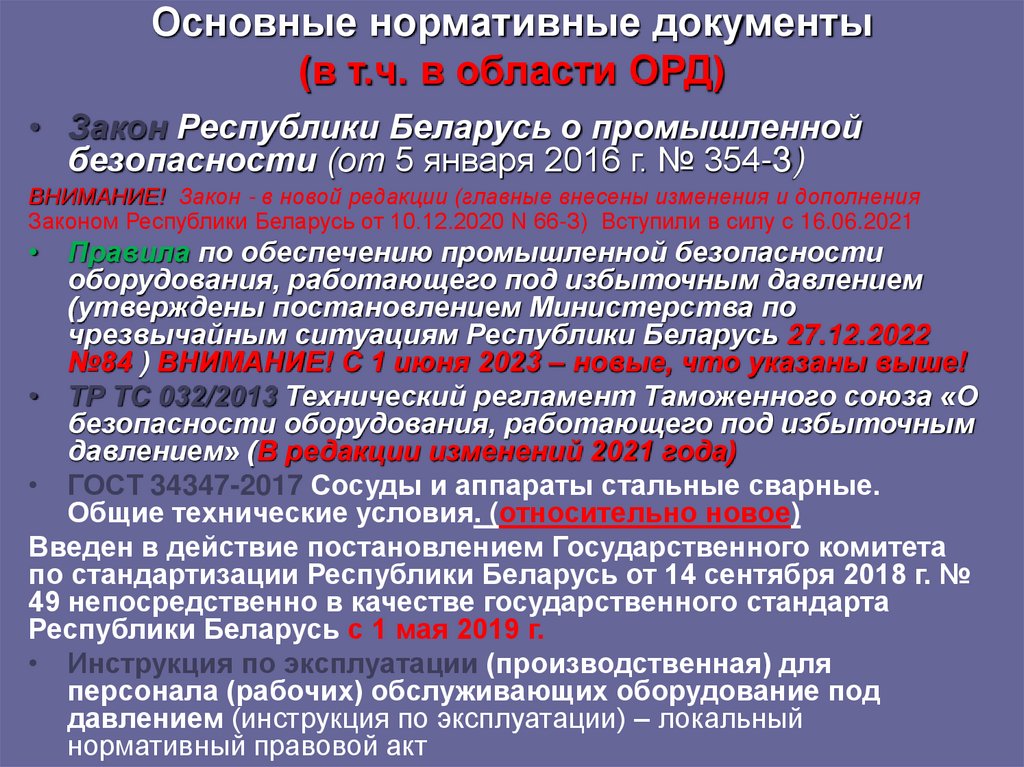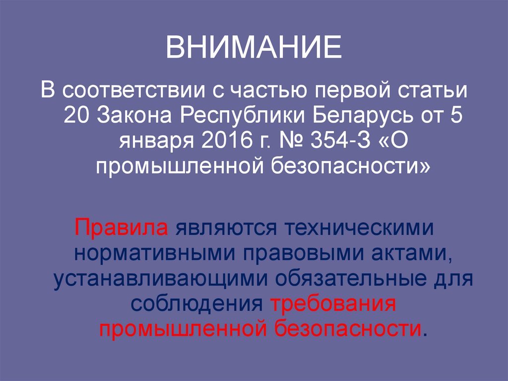 • Закон Республики Беларусь о промышленнойбезопасности (от 5 января 2016 г. № 354-З)