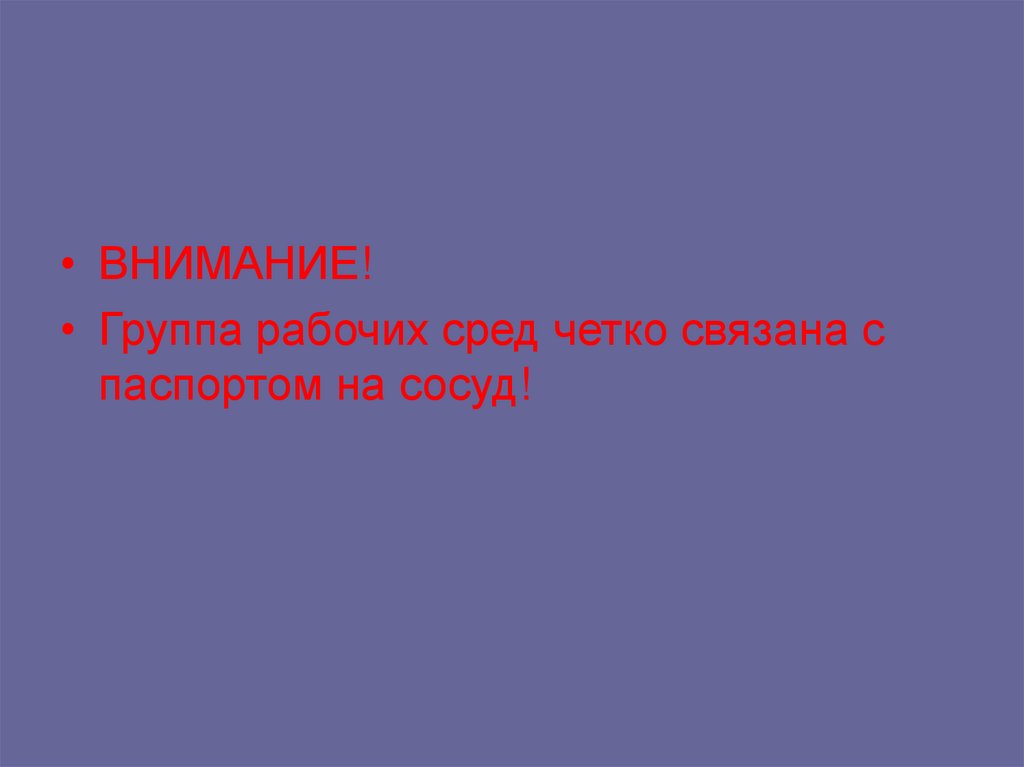 • ВНИМАНИЕ!• Группа рабочих сред четко связана с