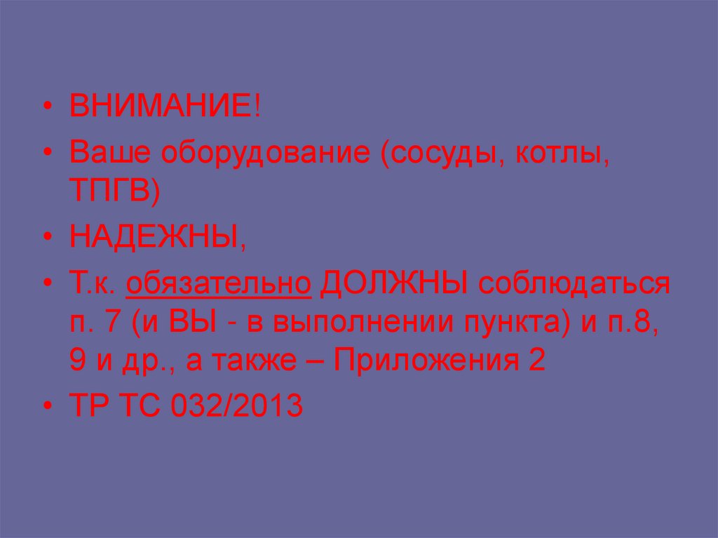• ВНИМАНИЕ!• Ваше оборудование (сосуды, котлы,