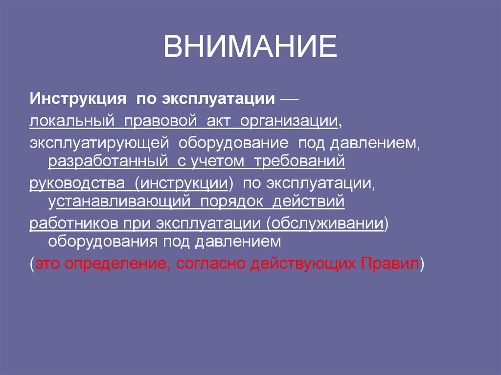 Инструкция по эксплуатации ––локальный правовой акт организации,