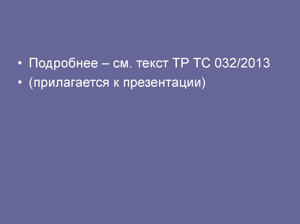 • Подробнее – см. текст ТР ТС 032/2013