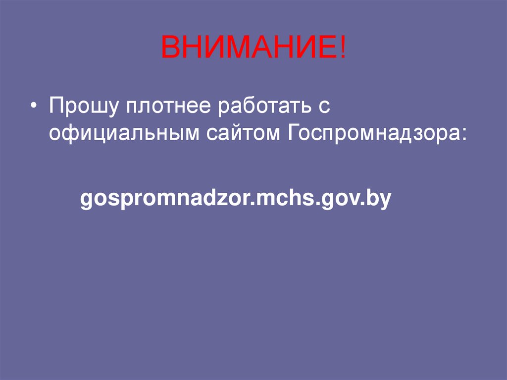 • Прошу плотнее работать софициальным сайтом Госпромнадзора: