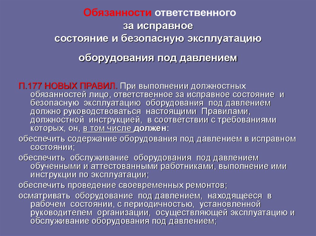 безопасности оборудования, работающего под избыточным