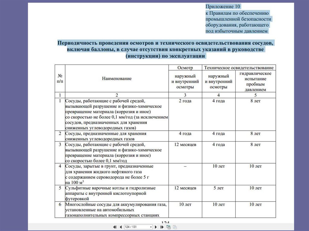 оборудования, работающего под избыточным давлением
