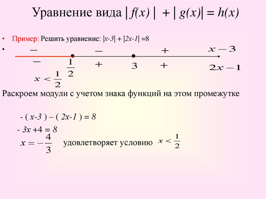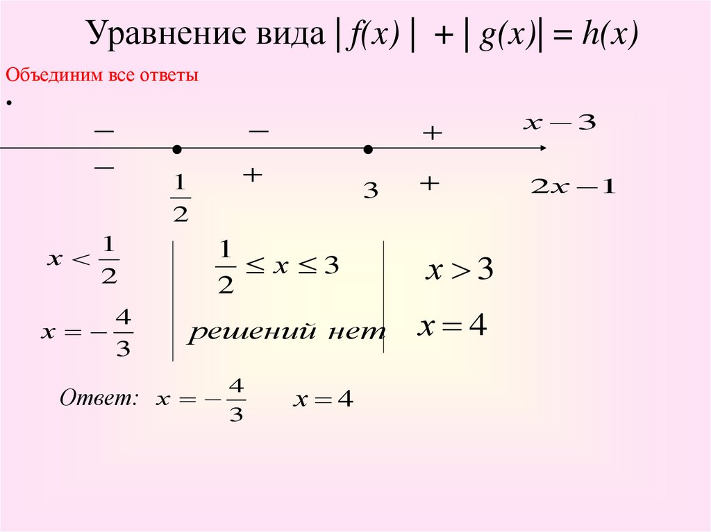 12. Уравнение вида | f(x) | + | g(x)| = h(x)