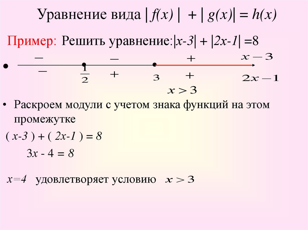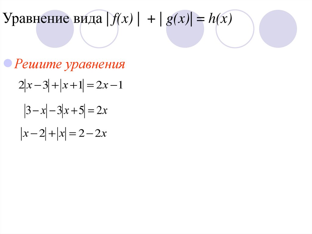 13. Уравнение вида | f(x) | + | g(x)| = h(x)