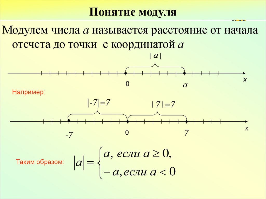 Модулем числа а называется расстояние от началаотсчета до точки с координатой а