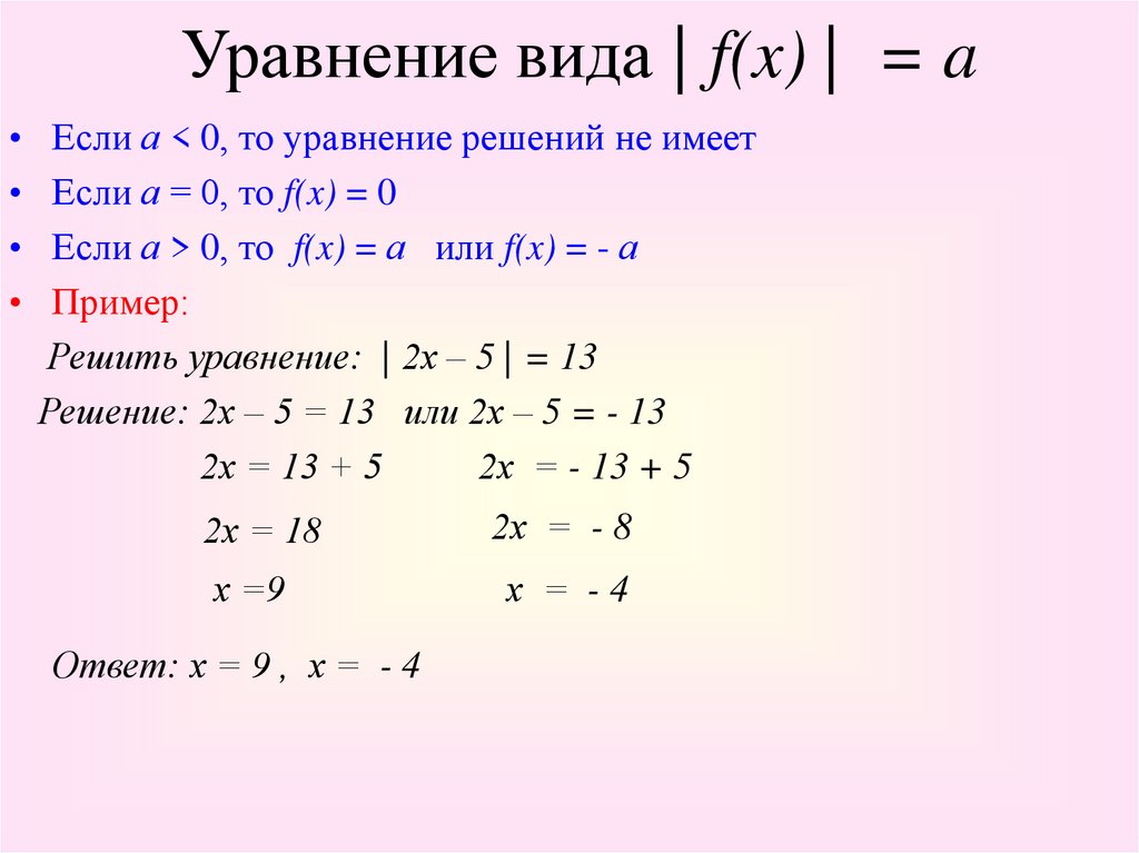 • При решении уравнений данного вида используетсяправило раскрытия модуля.