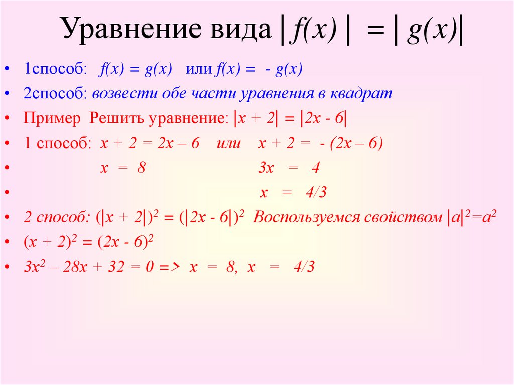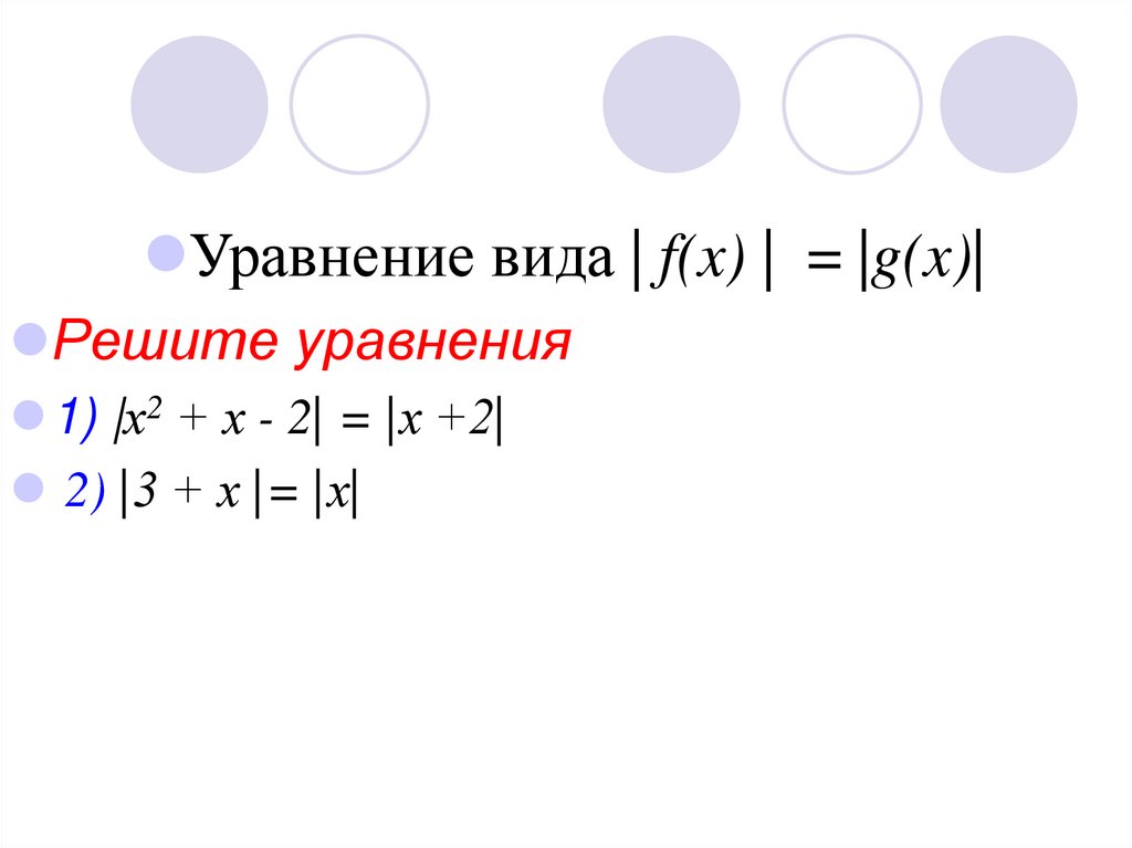 Уравнение вида | f(x) | = |g(x)|Решите уравнения