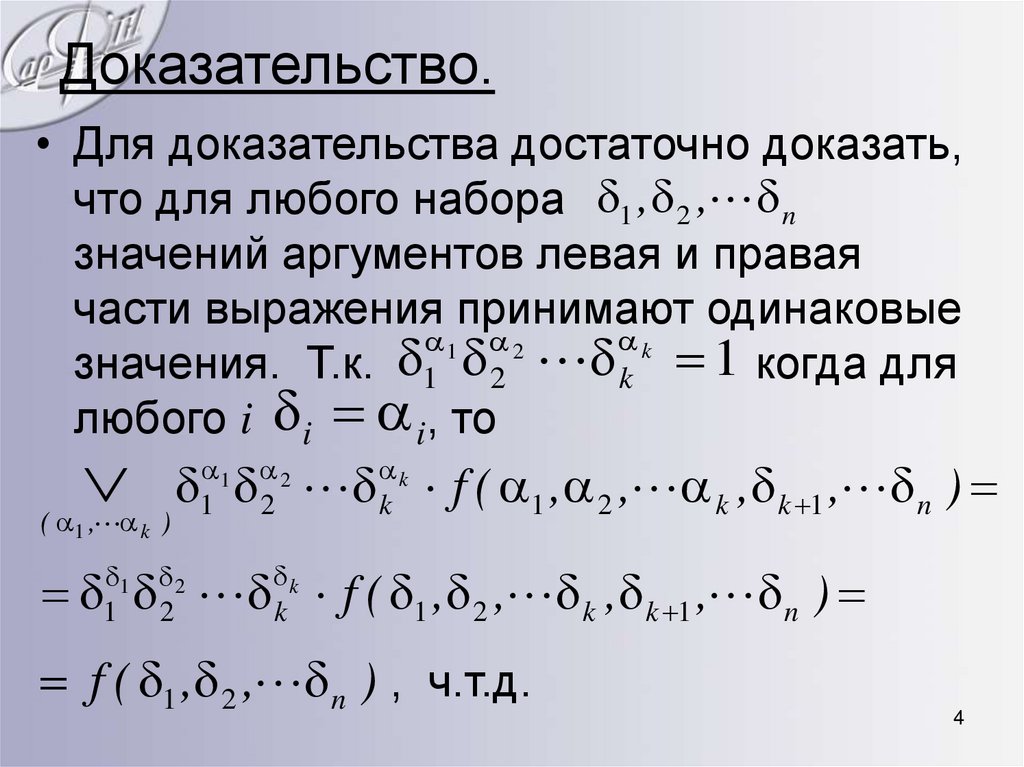 • Для доказательства достаточно доказать,что для любого набора 1 , 2 , n