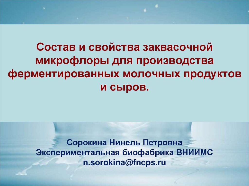 1. Состав и свойства заквасочной микрофлоры для производства ферментированных молочных продуктов и сыров.