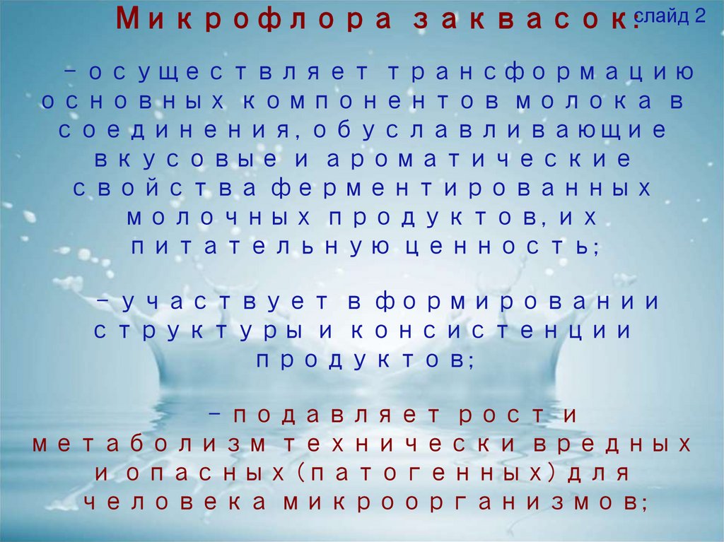 Микрофлора заквасок:слайд 2- осуществляет трансформацию
