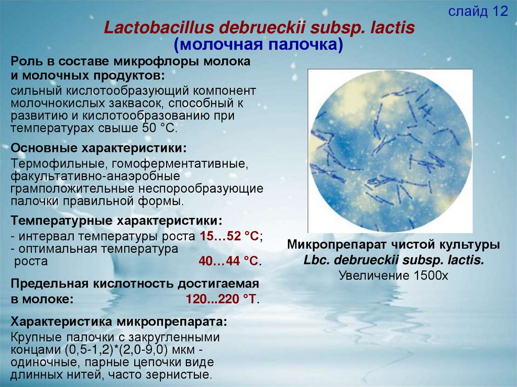 слайд 12Lactobacillus debrueckii subsp. lactis