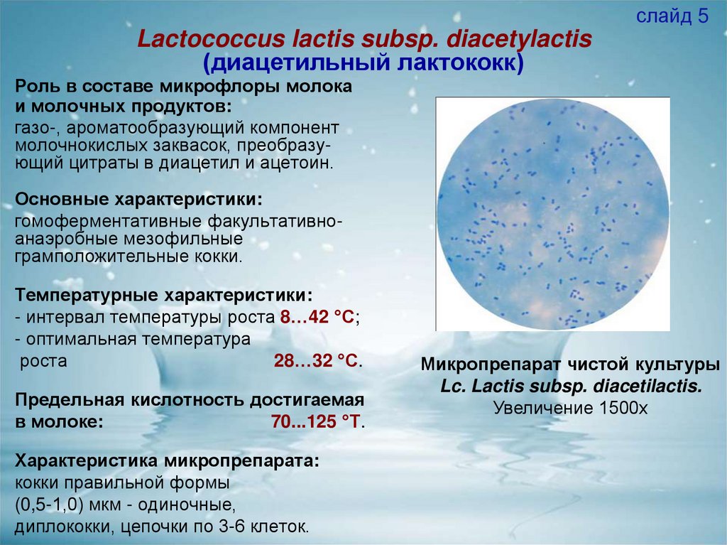 слайд 5Lactococcus lactis subsp. diacetylactis
