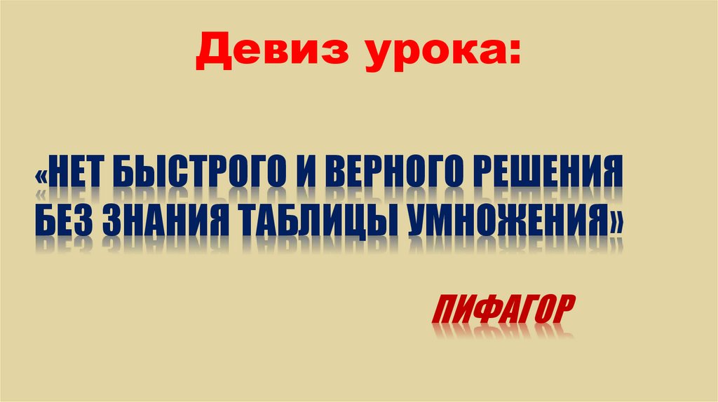 Девиз урока:«НЕТ БЫСТРОГО И ВЕРНОГО РЕШЕНИЯ