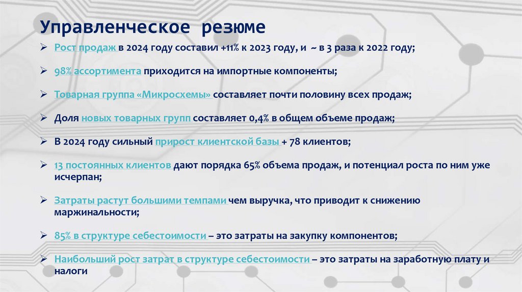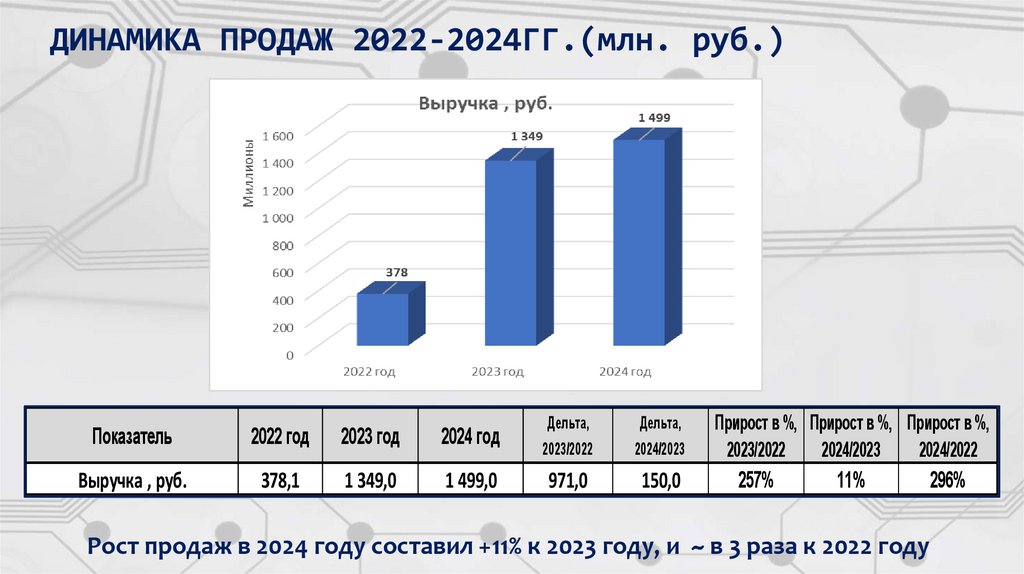 Управленческое резюмеРост продаж в 2024 году составил +11% к 2023 году, и ~ в 3 раза к 2022 году;