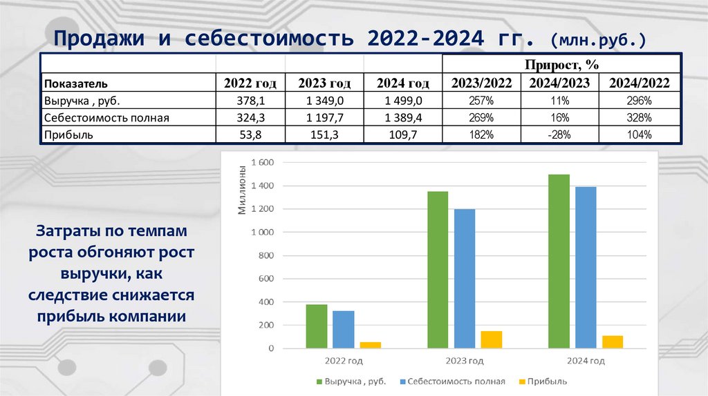 Продажи и себестоимость 2022-2024 гг. (млн.руб.)Показатель