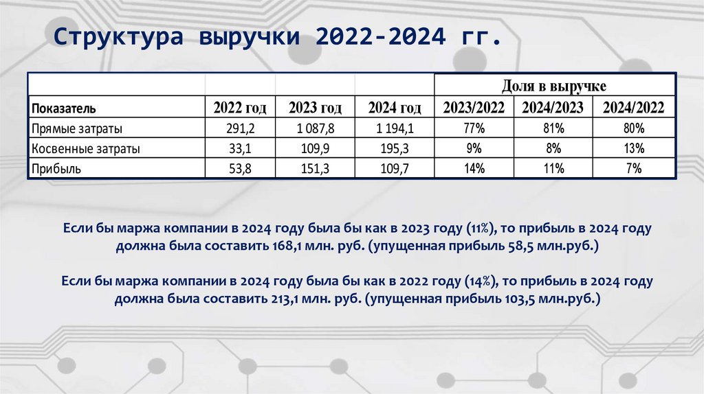 Если бы маржа компании в 2024 году была бы как в 2022 году (14%), то прибыль в 2024 году