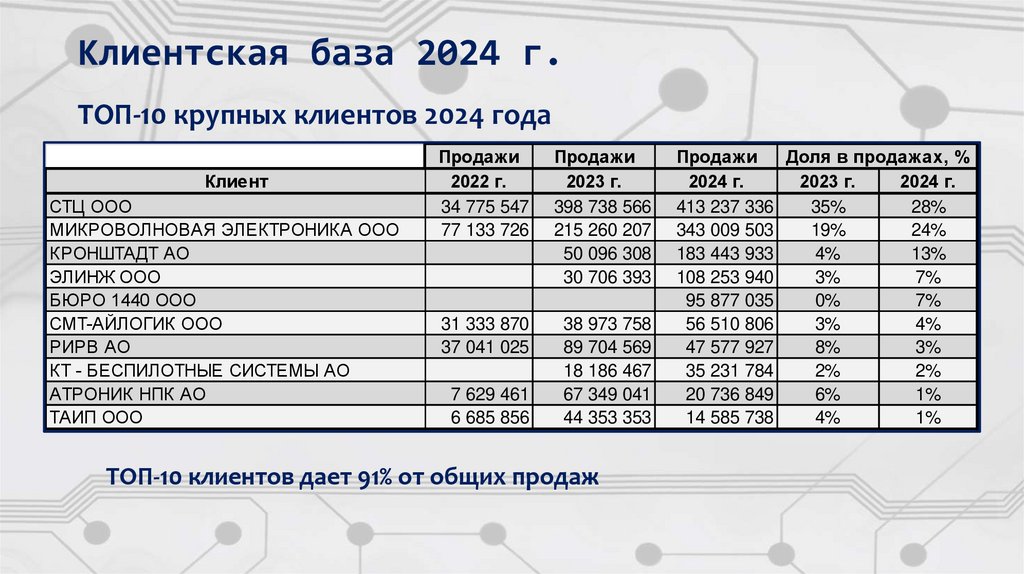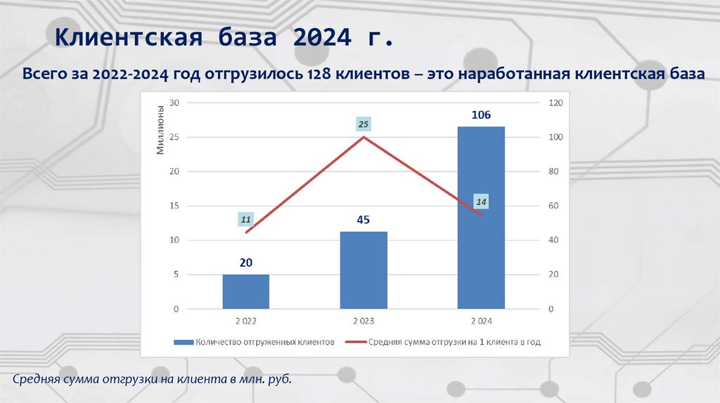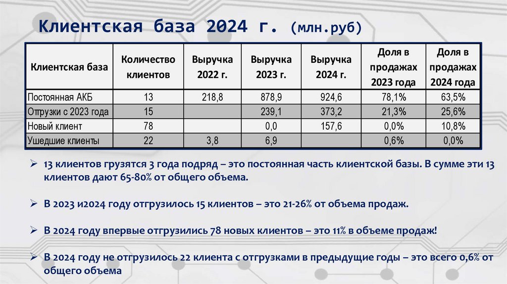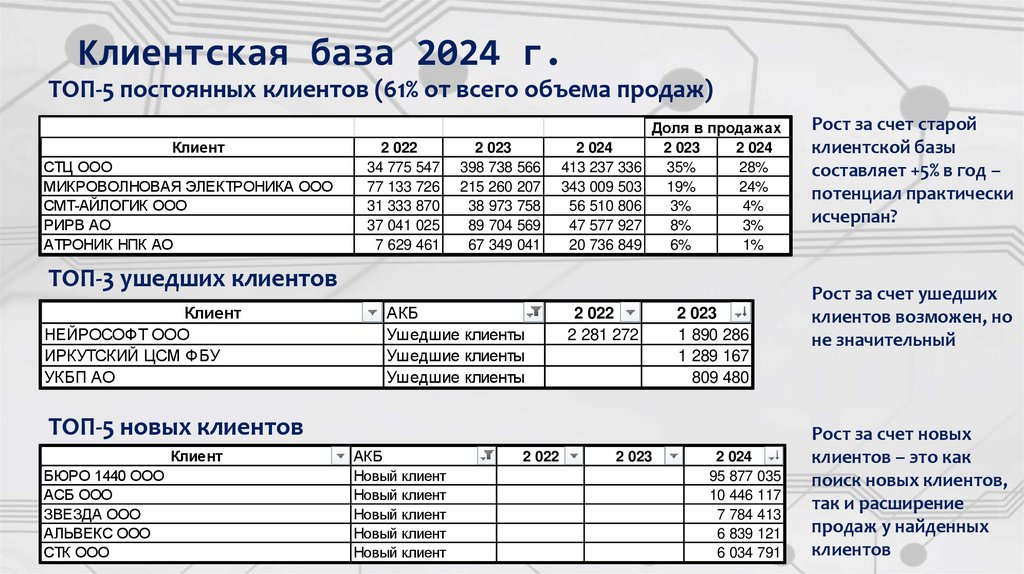 В 2024 году сильный прирост клиентской базы + 78 клиентов;