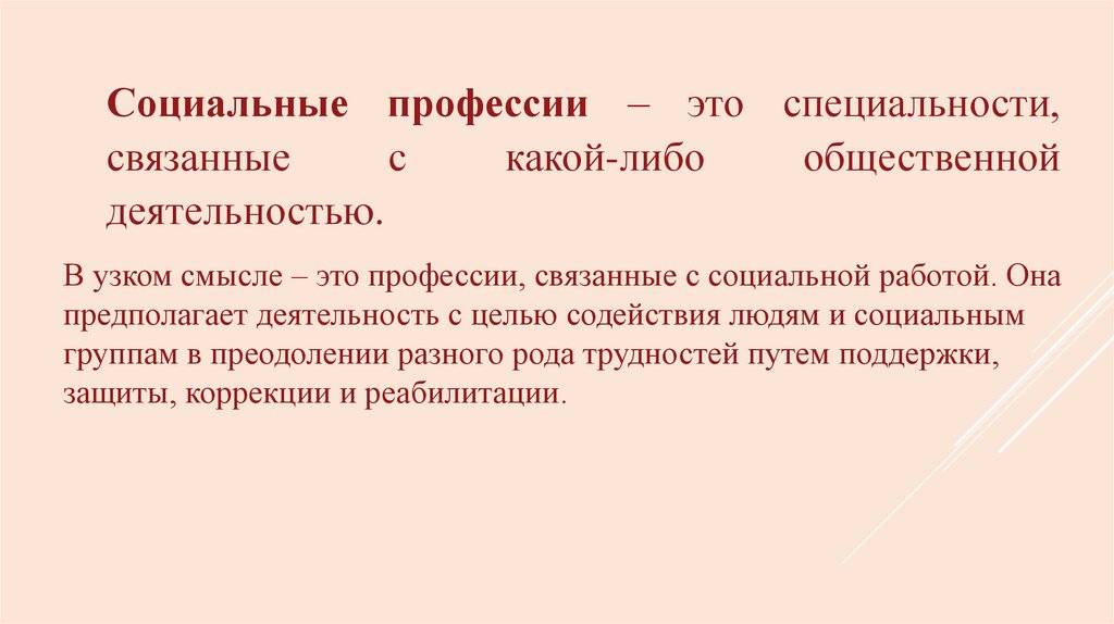 В узком смысле – это профессии, связанные с социальной работой. Она