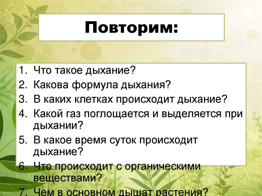 Повторим:1. Что такое дыхание?