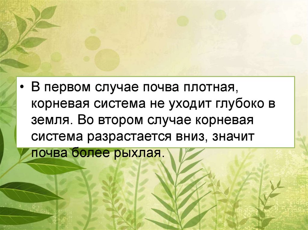 • В первом случае почва плотная,корневая система не уходит глубоко в