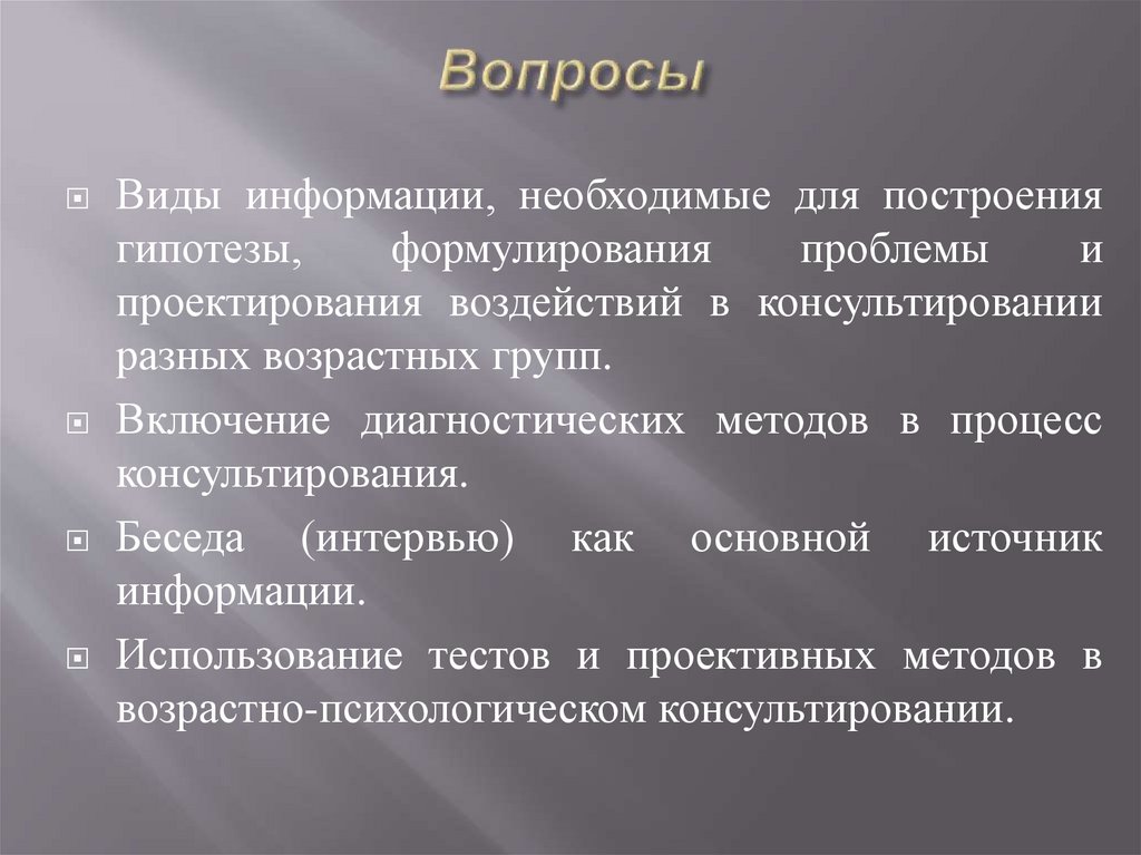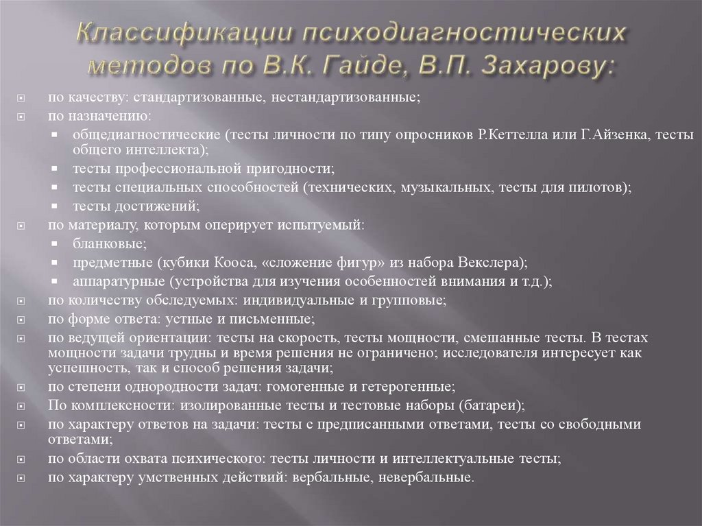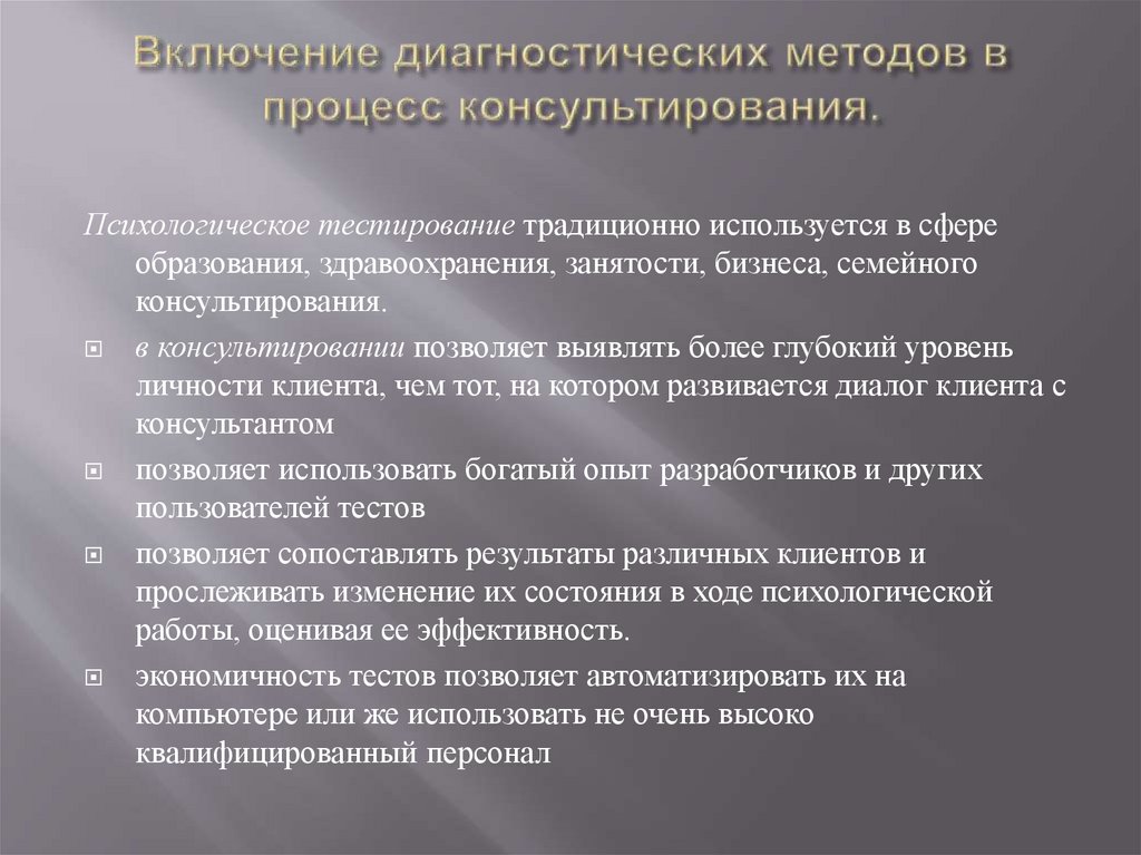 Обзор диагностических методов используемых в возрастно- психологическом консультировании