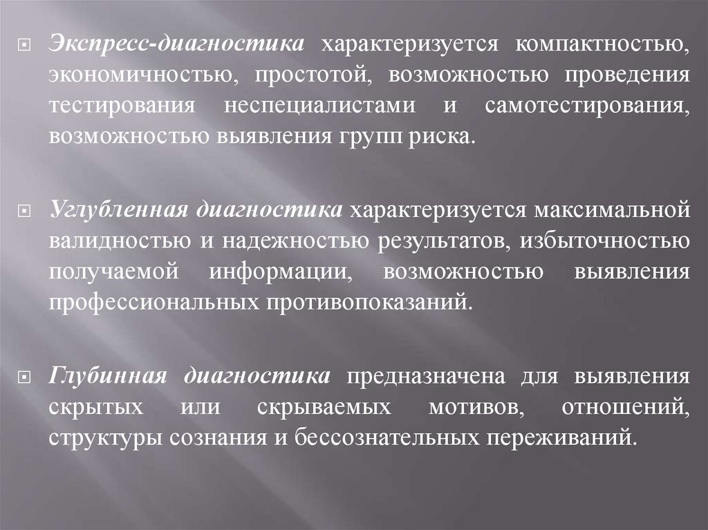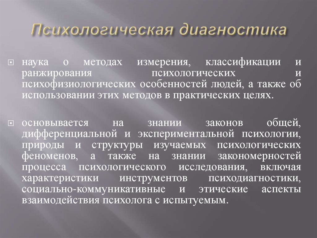 Диагноз психологический – вывод о наличии и меревыраженности тех или иных психологических особенностей