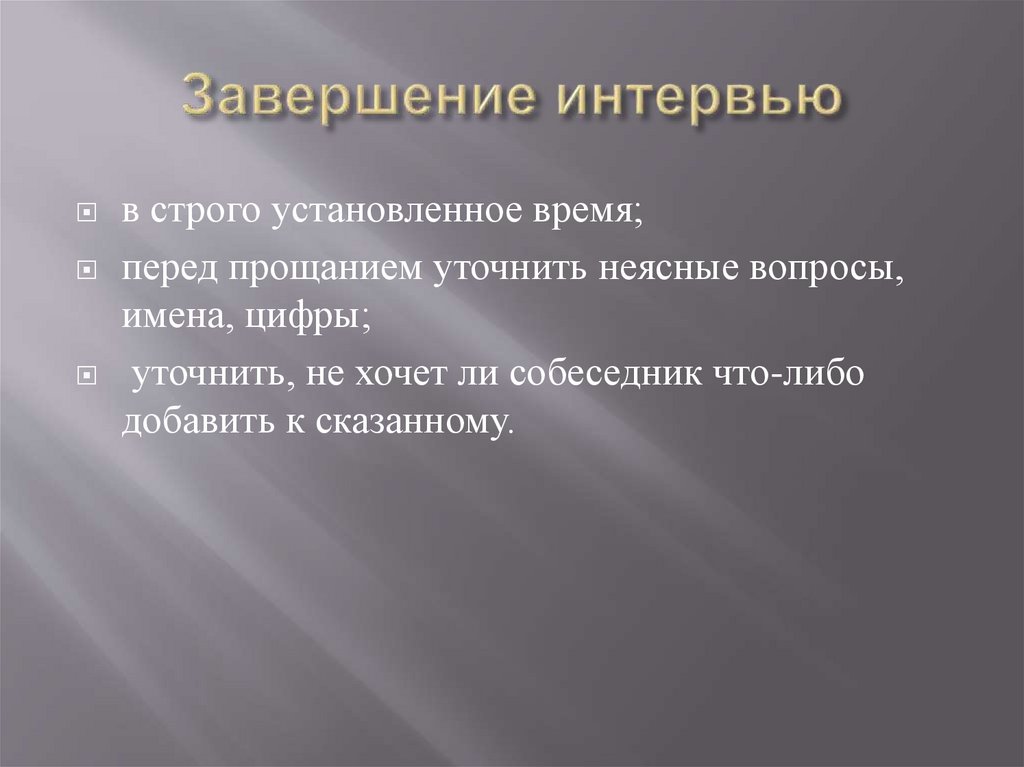 в строго установленное время;перед прощанием уточнить неясные вопросы,