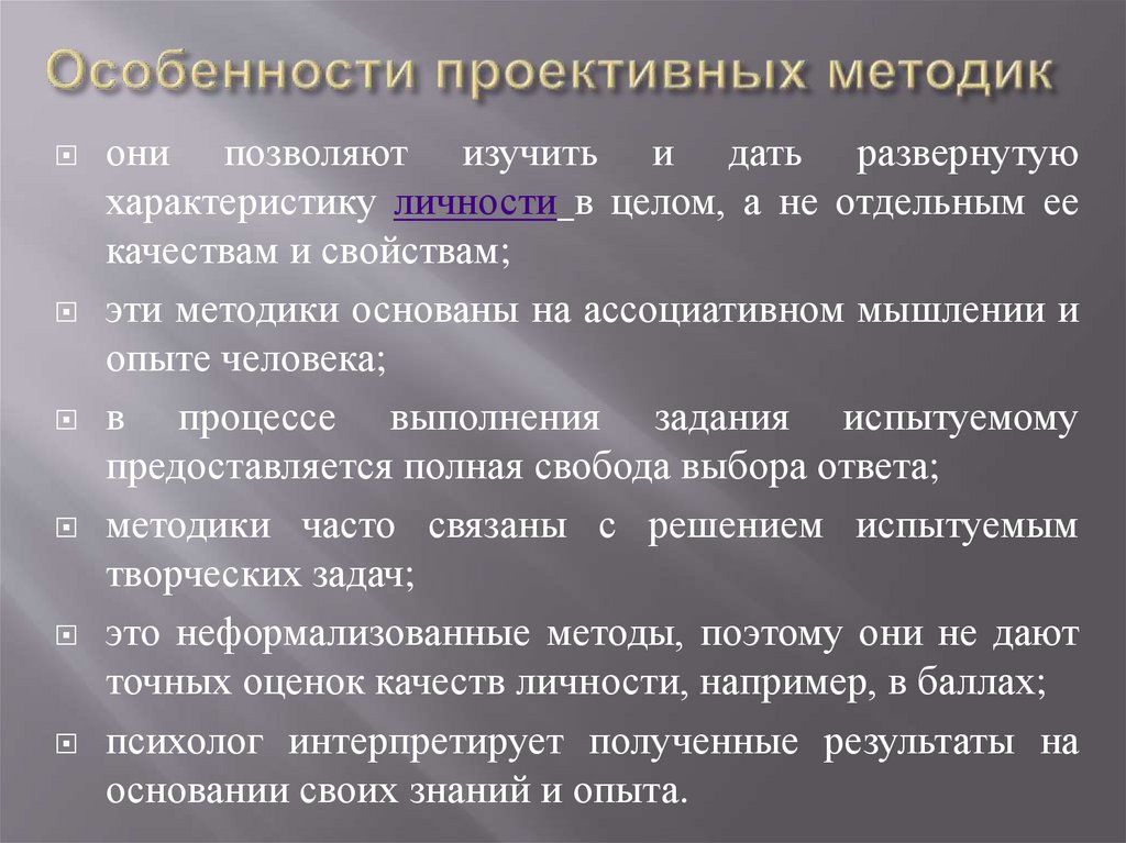 они позволяют изучить и дать развернутуюхарактеристику личности в целом, а не отдельным ее