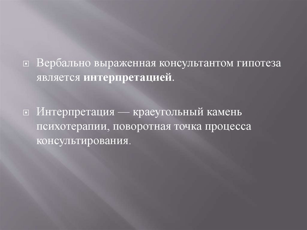 Вербально выраженная консультантом гипотезаявляется интерпретацией.