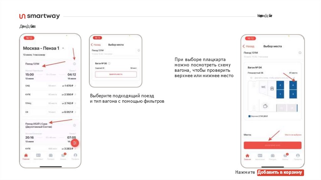 и тип вагона с помощью фильтров