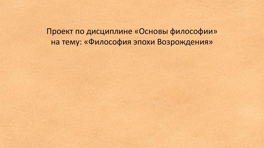 Проект по дисциплине «Основы философии»на тему: «Философия эпохи Возрождения»