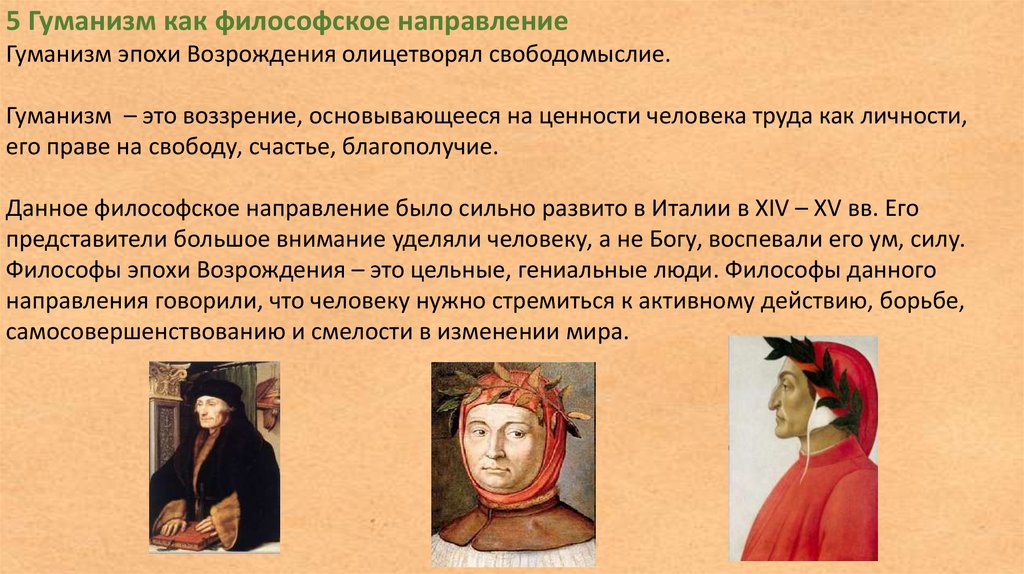 Гуманизм эпохи Возрождения олицетворял
