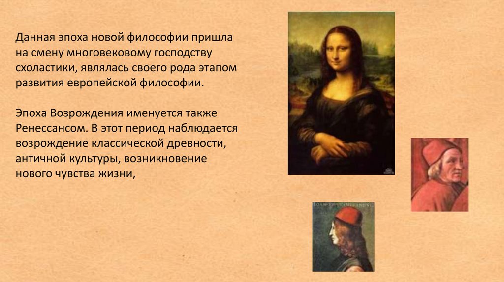 Философия эпохи Возрождения, активнопробуждает интерес к литературе и искусству
