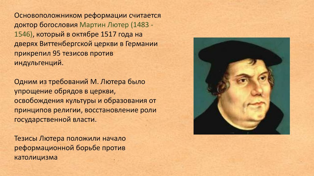 Одним из требований М. Лютера было