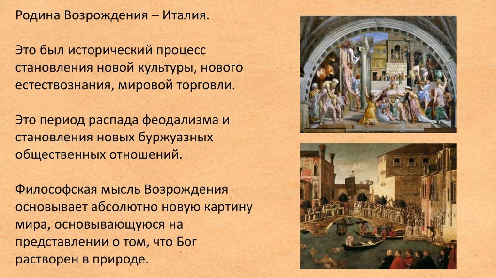 Родина Возрождения – Италия.Это был исторический процесс
