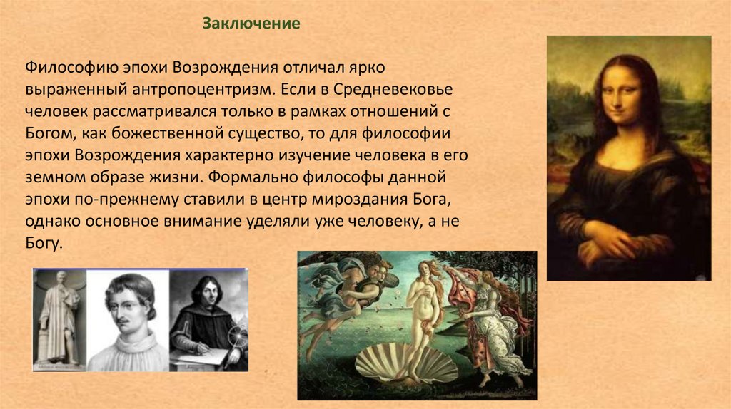 ЗаключениеФилософию эпохи Возрождения отличал ярко