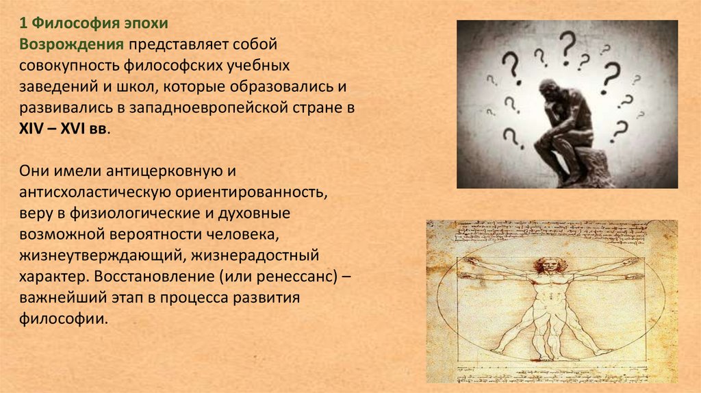 1 Философия эпохиВозрождения представляет собой