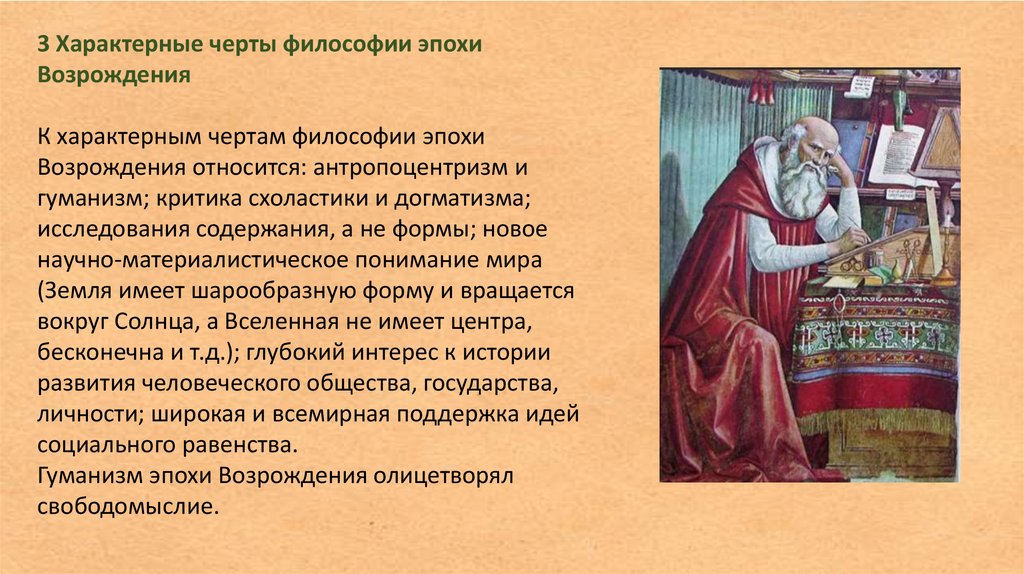 3 Характерные черты философии эпохиВозрождения