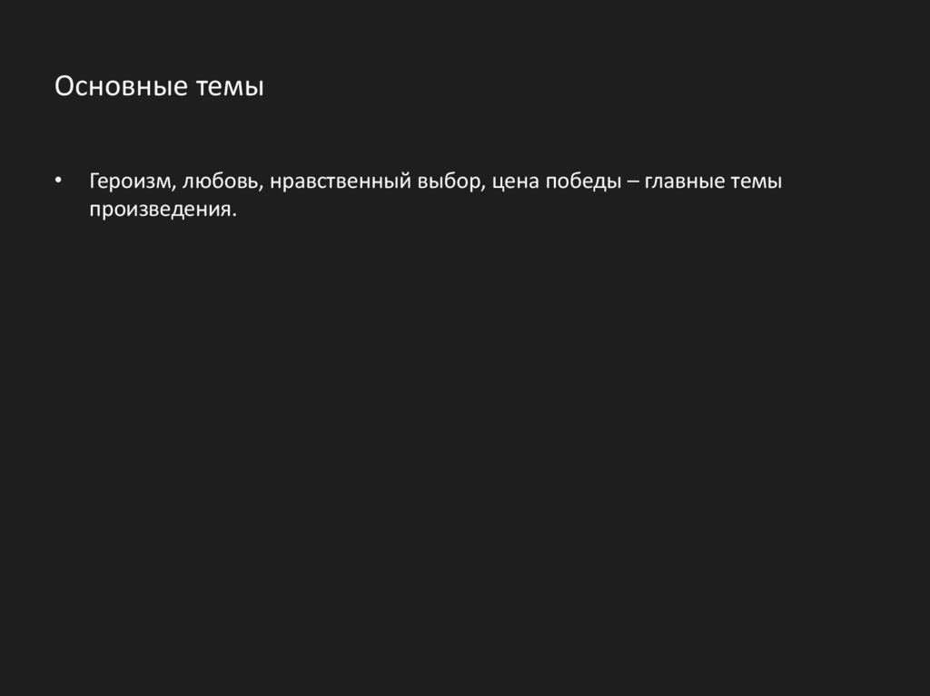 Героизм, любовь, нравственный выбор, цена победы – главные темы