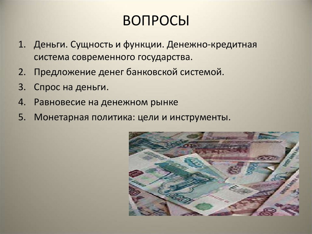 1. Деньги. Сущность и функции. Денежно-кредитнаясистема современного государства.