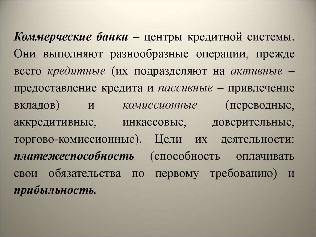 Коммерческие банки – центры кредитной системы.Они выполняют разнообразные операции, прежде