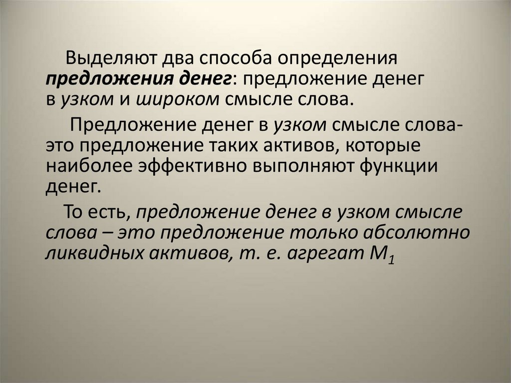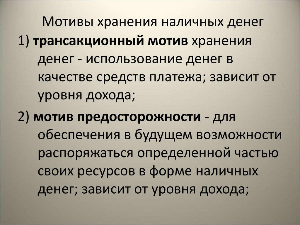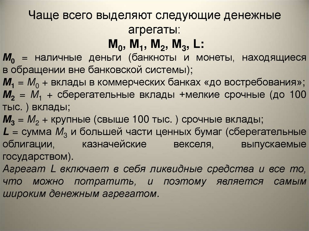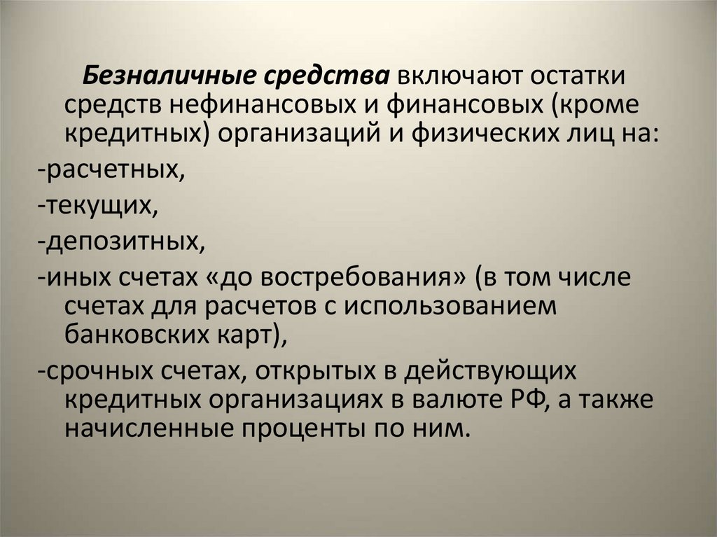 деньги (часть из них может быть депонирована на текущие счета). Наличные деньги